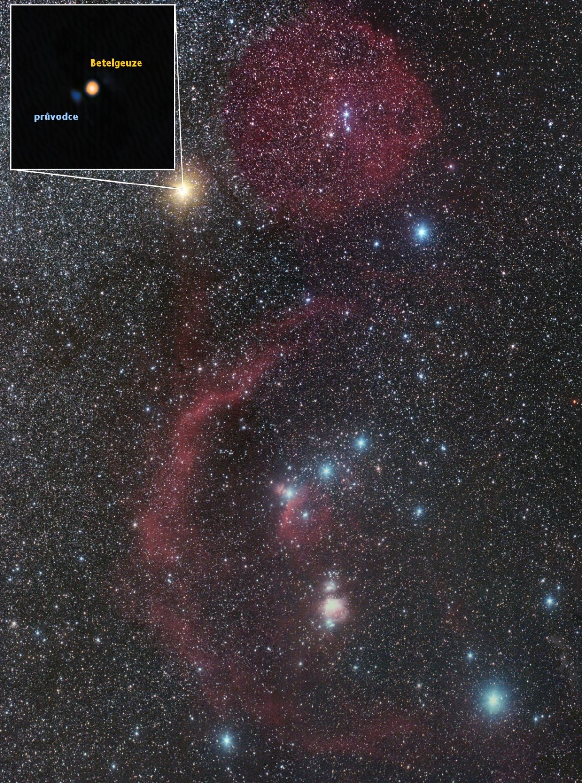 Hvězda Betelgeuse je od Země vzdálena 640 světelných roků. Její hmotnost se odhaduje na 10 až 20 hmotností Slunce, stáří na méně než 10 miliónů roků (což je jen nepatrná část věku Slunce, které existuje již 4,5 miliardy roků). Svůj životní cyklus zřejmě uzavře během několika miliónů roků. Ve svém nitru spotřebuje veškeré palivo a během nepatrného okamžiku exploduje jako supernova typu II. Astronomům dává příležitost studovat do velkých podrobností vývoj hmotných hvězd během jejich stárnutí.