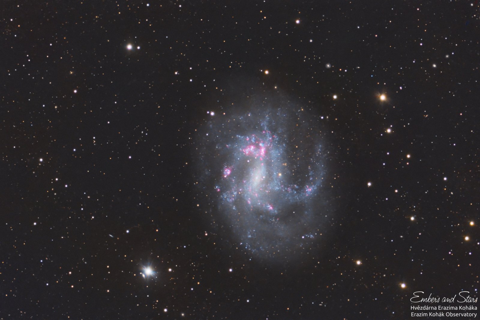 Zpracování: Data expozic vč. filtrů: 52 x Lum á 120sec, 38 x Red, 38 x Green, 45 x Blue, Kalibrace - Bias, Dark, Flat. Složeno v MaxIm DL, křivky, úrovně a text v PS6.