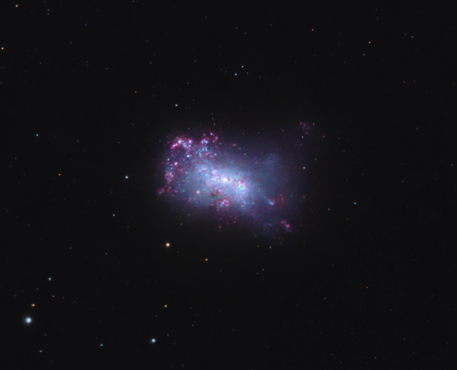 Snímek jsem kvůli špatnému zimnímu počasí pořizoval po celou zimu a jaro na přelomu let 2018/19, od listopadu až do začátku dubna, každou použitelnou noc. Konkrétně v nocích 17.-18.11., 28.11., 4.-5.12.2018, 27.-28.2., 23.3., 30.3.-4.4.2019. Se stále později nastávajícím soumrakem a objektem stěhujícím se na Hradcem Králové nasvícenou část oblohy jsem musel snímání ukončit, a tak jsem nasnímaná data konečně zpracoval. U takto slabého objektu jich nutně bude vždy málo, a zpracování si vyžádalo poměrně razantní postupy, což se dost podepsalo na vzhledu hvězd ve snímku přestože RGB bylo snímáno pouze 5min subexpzoicemi kvůli saturaci a velikosti kotoučků hvězd.