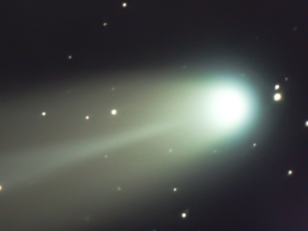 A přeci, ještě jeden vzdálený objekt na snímku nalezneme. Je na snímku ještě mnohem menší než galaxie M31, vypadá pouze jako mírně rozmazaná hvězdička. A je menší i ve skutečnosti, je dokonce menší i než naše Galaxie. Hvězdný ostrov zvaný galaxie v Trojúhelníku a označený M33 obsahuje přibližně 40 miliard hvězd a je od nás vzdálen 2,9 miliónu světelných let. A též je vidět pouhým okem, ovšem to je již pozorovatelský „majstrštyk“. Galaxie v Trojúhelníku je dokonce jedním z referenčních objektů Bortleho stupnice světelného znečištění.
