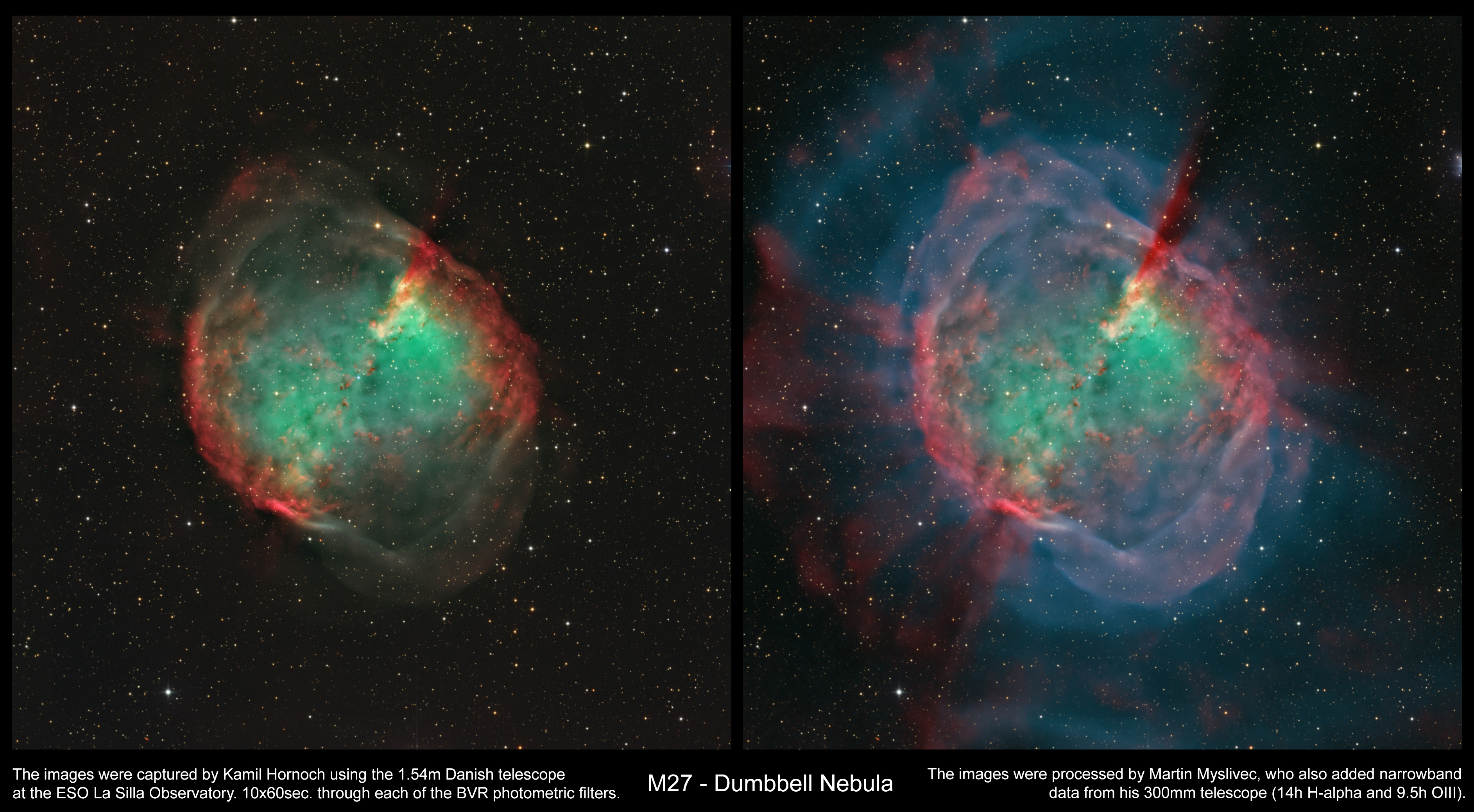 ČAM za prosinec 2025: M27 přes 1.54m Dánský dalekohled, La Silla