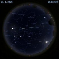 Přehled událostí na obloze a v kosmonautice od 19. 1. do 25. 1. 2026. Měsíc je mezi novem a první čtvrtí. Saturn s Neptunem jsou večer na jihozápadě, Uran je nejvýše a nad jihovýchodem je jasný Jupiter. Tři nejmenší planety jsou v zorném poli koronografu SOHO. Aktivita Slunce je zvýšená a nelze vyloučit ani slabší polární záře. Kromě komety 24P/Schaumasse, viditelné nejlépe v druhé polovině noci, připomínáme také zmínku o nadějných kometách jarní oblohy. S blížící se misí Artemis II kolem Měsíce jsme mohli na Floridě zaznamenat vývoz rakety SLS i s mobilní startovní věží na startovní rampu. Před 20 lety startovala na svou misi sonda New Horizons, tehdy ještě k planetě Pluto. Před 40 lety snímal Voyager 2 zblízka Uran.