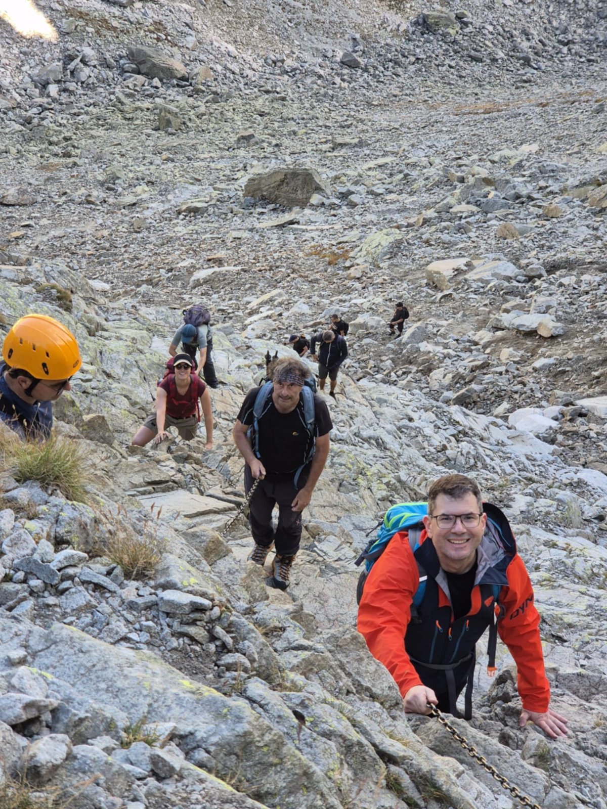 Výstup na Priečne sedlo. Autor: Michal ZajačekPočas uvítacieho prípitku bol odprezentovaný aj zaujímavý príspevok o vývoji architektúry v tatranskom regióne v podaní astrofyzika-architekta Petra Kurfürsta z Masarykovej univerzity. Prezentácia pripomenula doteraz zachované stavby Gedeona Majunke (Téryho chata, prezidentský zámoček Hohenlohe), Quida Hoepfnera (Grandhoteli Praha, Starý Smokovec, Štrbské Pleso), Dušana Jurkoviča (návrh budov lanoviek Tatranská Lomnica-Štart-Skalnaté pleso-Lomnický štít), Bohuslava Fuchsa (Hotel Morava) a mnohých ďalších.