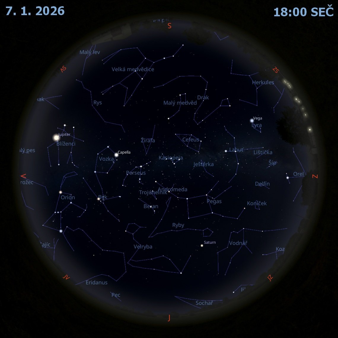 Ranní planety, tedy Saturn a Jupiter jsou za svítání jen velmi nízko nad jihovýchodem.