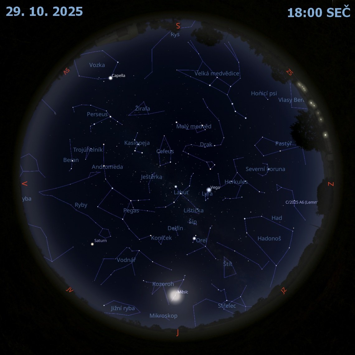 Měsíc je po úplňku. Večerními planetami jsou Jupiter a Venuše, v druhé polovině noci září Mars a Saturn. Začíná akce Globe at Night.