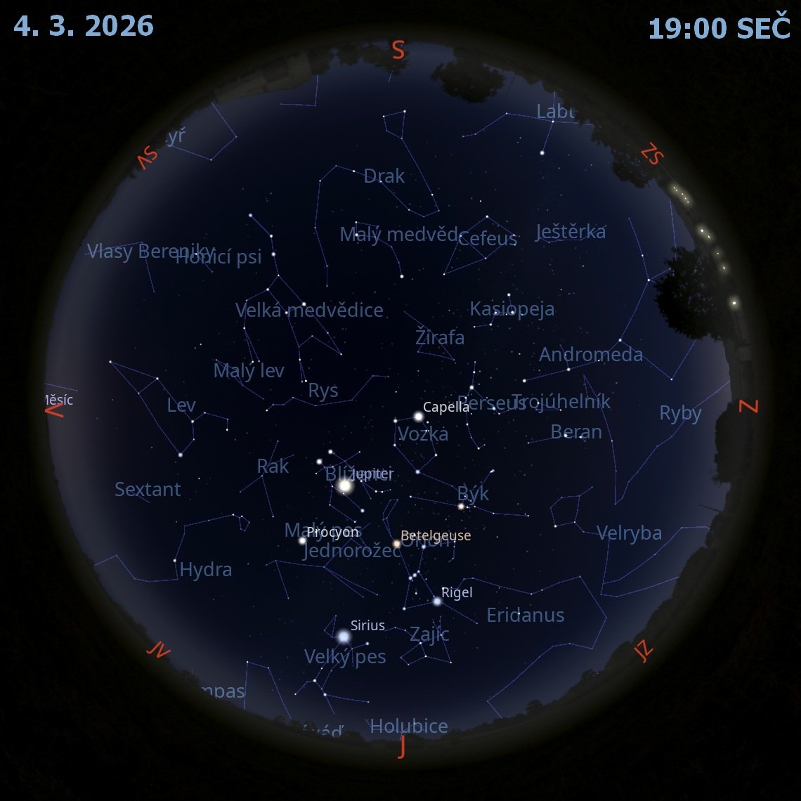 Mapa oblohy na leden s vybranými úkazy ke stažení v PDF