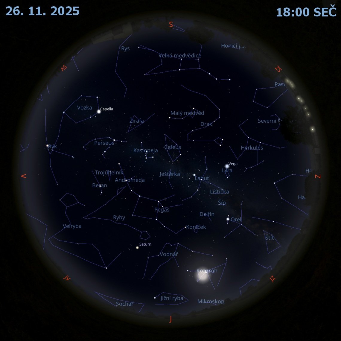 Mapa oblohy s úkazy v listopadu ke stažení v PDF.