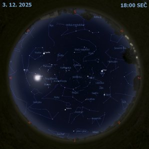 Mapa oblohy 3. prosince 2025 v 18:00 SEČ