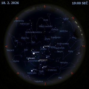 Mapa oblohy s úkazy v únoru ke stažení v PDF.