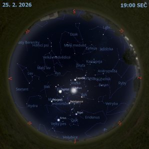 Měsíc bude v první čtvrti v úterý 24. 2. ve 13:27 SEČ. 23. února vytvoří prakticky rovnostranný trojúhelník s Uranem a Plejádami. 26. 2. už se blíží Jupiteru v Blížencích.