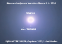 Na novoroční ranní obloze se schyluje k opravdu pěkné podívané. Jasná jitřenka Venuše se po období „osamělosti“ opět ocitá ve společnosti jiných objektů Sluneční soustavy, a to konkrétně Měsíce a planety Saturn. Na ranní obloze se 7. ledna 2016 přiblíží k planetám náš Měsíc ve fázi úzkého srpku (nedaleko bude i hvězda Antares) a 9. ledna 2016 se planety ocitnou na nebi úhlově tak blízko, že je bude možné obě najednou pozorovat v zorném poli dalekohledu.