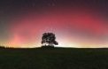 Typickým záběrem z počátku noci je i fotografie Davida Černého. Nahoře u kraje snímku je Polárka, zatímco níže dole vlevo se v záři úplně topí Velký vůz. Všimněte si, že u obzoru je vidět i níže ležící zelená záře tvořená kyslíkem, k jehož excitaci, vybuzení ke svícení, je v nižší vrstvě atmosféry třeba méně energie, než k excitaci kyslíku ve vyšších a řidších vrstvách atmosféry. Výše však kyslík vyzařuje v červené oblasti spektra.