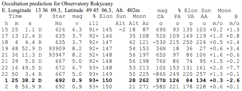 Posledně jmenovaných úkazů, vhodných pro evscope, určitě neproběhnou ve vašem okolí ročně stovky, většinou ani desítky, ale spíše jednotky, a tak není časově náročné se jim věnovat. A jeden takový planetkový zákryt nás právě čeká!