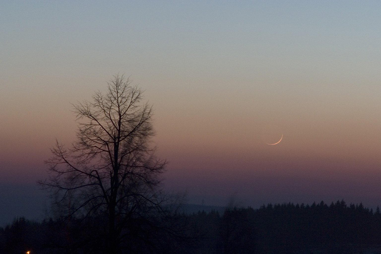 Pozorování večerního srpku bude jistě možné i v oblastech mimo hory, ale pouze pokud zůstane jasno. V takovém případě si počkejme až do 29. ledna. V neděli večer bude ještě srpek nízko na jihozápadě, ale bude už viditelný bez obtíží a nepochybně si všimneme i krásného popelavého svitu, tedy světla odraženého od Země, které nasvěcuje noční stranu Měsíce. Podobná situace nastala na Silvestra 2016.