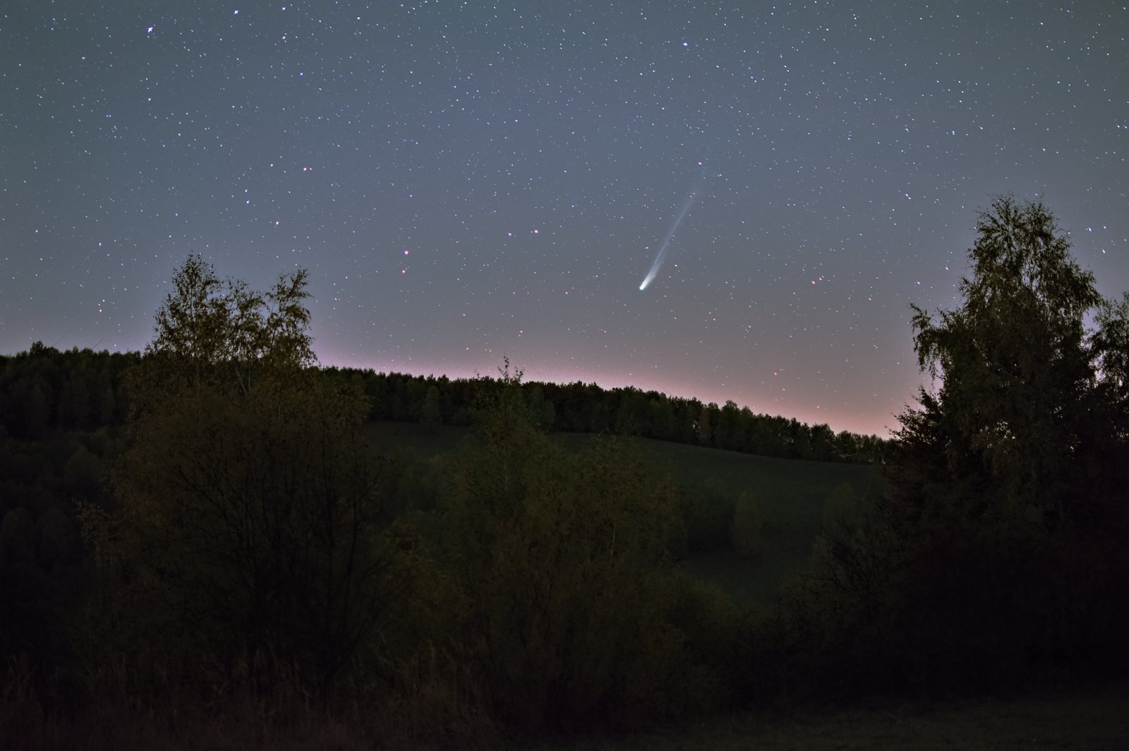Přehled událostí na obloze a v kosmonautice od 27. 10. do 2. 11. 2025. Měsíc bude v první čtvrti. Saturn je dobře vidět večer, později v noci se přidává Jupiter, ráno končí viditelnost Venuše. Kometa C/2025 A6 (Lemmon) nám dělá radost nízko na večerní obloze, pokud se vůbec vyjasní. O něco výše je trochu slabší kometa C/2025 R2 (SWAN). Obě jsou krásné ve větším dalekohledu. Dozvěděli jsme se, kterých 13 experimentů mise Aleše Svobody na ISS podpoří ESA. Japonská zásobovací loď HTV-X je na cestě k ISS. Mezinárodní vesmírná stanice je trvale obydlena již 25 let.