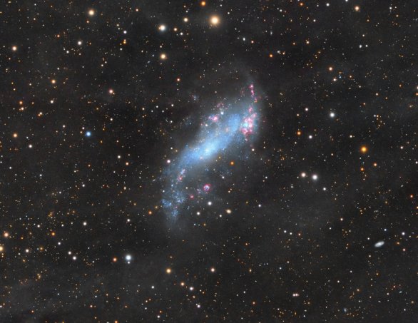 IC 5146 (Zámotok) je emisná hmlovina a otvorená hviezdokopa v súhvezdí Labuť. Objavil ju nemecký astronóm Max Wolf 28. júla v roku 1894. Neskôr v roku 1899 ju pozoroval aj britský astronóm Thomas Espin. Hmlovina je obklopená okrajom tmavej hmloviny s názvom Barnard 168, ktorá oddeľuje hmlovinu od hviezdneho pozadia. Červená farba hmloviny je spôsobená ionizáciou od centrálnej jasnej hviezdy spektrálneho typu B0, ktorá svojím ultrafialovým žiarením ionizuje okolitý vodík. Modrasté sfarbenie niektorých častí hmloviny je spôsobené rozptylom viditeľného svetla z hviezd na prachu, ktorý sa v hmlovine nachádza. Vek centrálnej a najjasnejšej hviezdy sa odhaduje na 100 tisíc rokov a v okolitej otvorenej hviezdokope sa nachádza niekoľko stoviek mladých hviezd s priemerným vekom okolo milión rokov. Z tohto vyplýva, že na tomto mieste pravdepodobne došlo k niekoľkým epizódam hviezdotvorby, ktoré pokračujú až dodnes. Vybavenie: SkyWatcher NEQ6Pro, GSO Newton astrograf 200/800 (200/600 F3), Starizona Nexus 0.75x komakorektor, Touptek ATR585M, AFW-M, Touptek LRGBSH filtre, Gemini EAF focuser, guiding TS Off-axis + PlayerOne Ceres-C, SVBony 241 power hub, automatizovaná astrobúdka s mojím vlastným OCS (observatory control system). Software: NINA, Astro pixel processor, GraXpert, Pixinsight, Adobe photoshop Lights 85x180sec. R, 68x180sec. G, 76x180sec. B, 130x120sec. L, 99x600sec Halpha, 74x600sec. S2, master bias, flats, master darks, master darkflats Gain 150, Offset 300. 8.8. až 30.8.2025 Belá nad Cirochou, severovýchod Slovenska, bortle 4