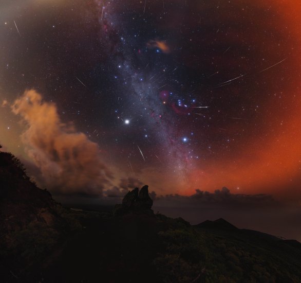 Popis: Letos jsem se vydal na ostrov La Palma, abych tento meteorický roj zachytil. Bouře Emilia mi trochu zkomplikovala plány, ale fotka přesto dopadla skvěle. Na fotce je více než 40 meteorů, které jsem nafotil, když se objevila díra v oblačnosti.