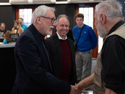 Fotografie z oslavy 90. narozenin Jiřího Grygara, kde se sešli zástupci ČAS, Astronomického ústavu AV, Fyzikálního ústavu AV, Ebicyklu a Sisyfa.