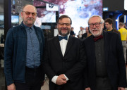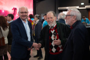 Fotografie z oslavy 90. narozenin Jiřího Grygara, kde se sešli zástupci ČAS, Astronomického ústavu AV, Fyzikálního ústavu AV, Ebicyklu a Sisyfa.