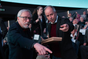 Fotografie z oslavy 90. narozenin Jiřího Grygara, kde se sešli zástupci ČAS, Astronomického ústavu AV, Fyzikálního ústavu AV, Ebicyklu a Sisyfa.