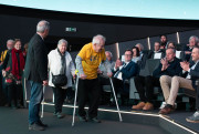 Fotografie z oslavy 90. narozenin Jiřího Grygara, kde se sešli zástupci ČAS, Astronomického ústavu AV, Fyzikálního ústavu AV, Ebicyklu a Sisyfa.