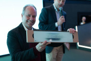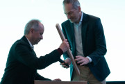 Fotografie z oslavy 90. narozenin Jiřího Grygara, kde se sešli zástupci ČAS, Astronomického ústavu AV, Fyzikálního ústavu AV, Ebicyklu a Sisyfa.