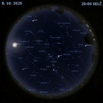 Přehled událostí na obloze a v kosmonautice od 6. 10. do 12. 10. 2025. Měsíc je počátkem týdne v úplňku a na konci týdne přestává být vidět na večerní obloze. To umožní lepší viditelnost dvou komet, jejichž nástup na večerní oblohu s nadějí očekáváme. Kometa C/2025 A6 (Lemmon) bude vidět zatím jen dalekohledem a trochu obtížněji, ale snad také menším dalekohledem, by mohla být vidět i C/2025 R2 (SWAN). Planeta Saturn je vidět celou noc a bude v konjunkci s Měsícem. Jupiter a Venuše jsou vidět nejlépe ráno. Slunce je poměrně aktivní a opět nastaly slabé polární záře. V plánech startů raket nyní figuruje výhradně Falcon 9 s telekomunikačními družicemi Starlink a Kuiper. Sto let od narození by oslavil významný český astronom Miroslav Plavec.