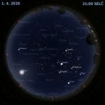 Mapa zobrazuje oblohu ve středu 18. dubna ve 22:00 SELČ.