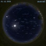 Přehled událostí na obloze a v kosmonautice od 29. 12. 2025 do 4. 1. 2026. Ještě se loučíme se starým rokem a už nám začíná první týden toho nového. Zakončíme ho úplňkem Měsíce, což znamená, že letos meteory roje Kvadrantidy asi neuvidíme. Večer je nad jihem Saturn. Jupiter je vidět celou noc. Další planety jsou slabé a přezařuje je Měsíc nebo jsou úhlově blízko Slunci. Aktivita Slunce se podle očekávání zvýšila. V kosmonautice jsme mohli zaznamenat po delší době i dva neúspěšné starty, ale i závěr roku ještě přináší další starty. Před 225 lety se podařilo nalézt první těleso v oblasti mezi Marsem a Jupiterem, trpasličí planetu Ceres.